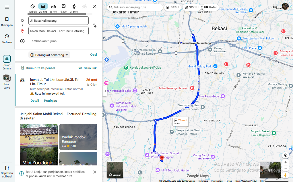 β Rute Tercepat dari Kalimalang ke Fortune8 Detailing